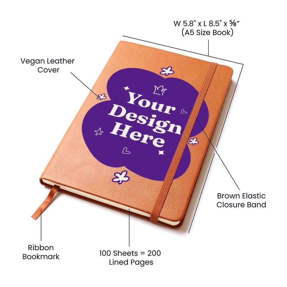 Quoi de mieux pour apaiser votre esprit agité qu'une page blanche ? Le journal en cuir graphique est l'accessoire idéal pour vos rappels personnels, vos objectifs ou tout simplement pour vous organiser. Ce carnet en cuir vegan vous permet d'écrire où que vous soyez grâce à sa légèreté. De plus, le passage d'une page à l'autre est facilité grâce au marque-page ruban et à la fermeture élastique. La couverture unique est imprimée professionnellement avec des couleurs vives, pour que votre design dure aussi longtemps que votre liste de choses à faire !