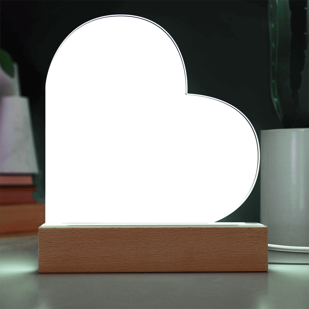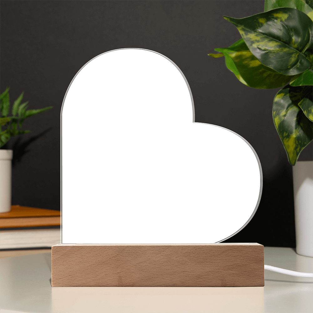plaque sera fabriquée en acrylique de haute qualité et comportera une conception gravée de manière professionnelle. L'enseigne en acrylique comprend une base en bois avec LED qui se branche sur une prise USB standard, affichant l'œuvre d'art dans plusieurs réglages de couleurs et d'ajustements de luminosité. Vous voulez vous débarrasser du cordon ? Passez à la base en bois avec LED fonctionnant sur batterie pour placer votre enseigne n'importe où ! Ce cadeau est véritablement unique et sentimental, et sera précieusement conservé au fil des ans.